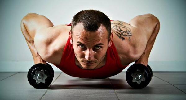 Можно ли как-то улучшить классические отжимания от пола? Конечно! Увеличить амплитуду движения с помощью гантелей. Что нужно для такого фитнес-упражнения для мужчин? Понадобятся только гантели.