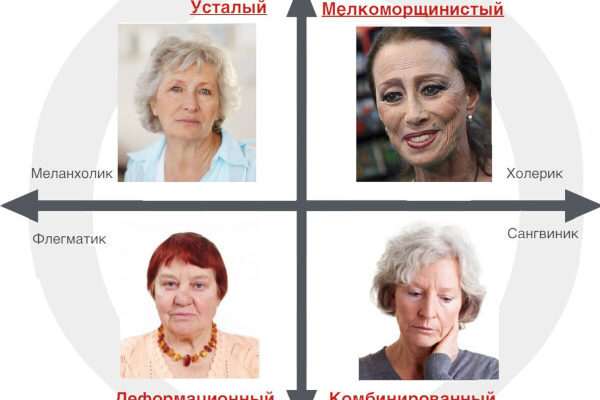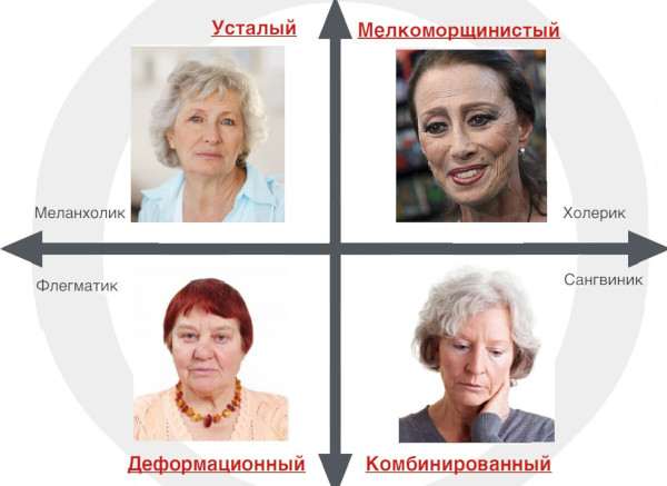 Старение проходит у разных людей неодинаково. Оно зависит от разновидности типа лица.